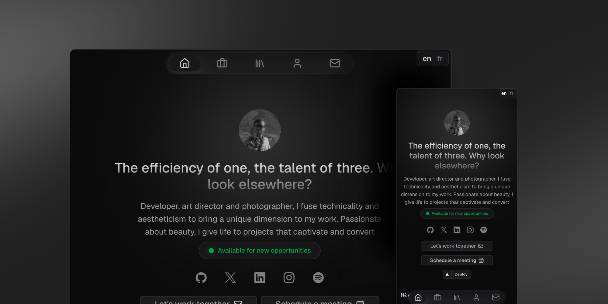 Canvas Portfolio is a fully customizable i18n portfolio template built with Nuxt and Nuxt UI, designed to help you showcase your work, testimonials, and key information with ease. The template integrates with Nuxt Studio module for a smooth editing experience, while leveraging Nuxt Content for content management. Built with performance, flexibility, and responsiveness in mind, Canvas Portfolio provides a robust foundation for developers and creatives alike.